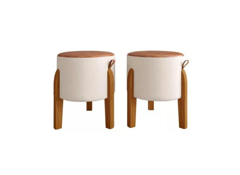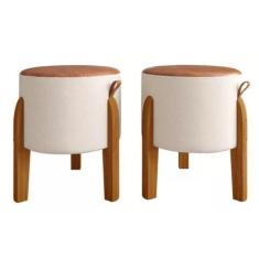 Kit 2 Banquetas Banco Puff Banquinho Assento Estofado Tecido Linho com