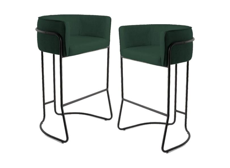Kit 2 Banquetas Base Aço Preto Betina B-303 Veludo Verde - Domi