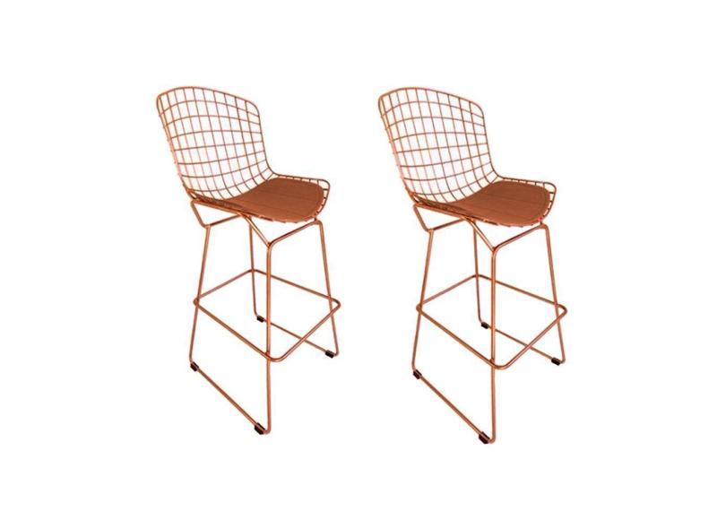 Kit 2 Banquetas Bertoia Cobre D60 Com Assento Cobre Cor Marrom