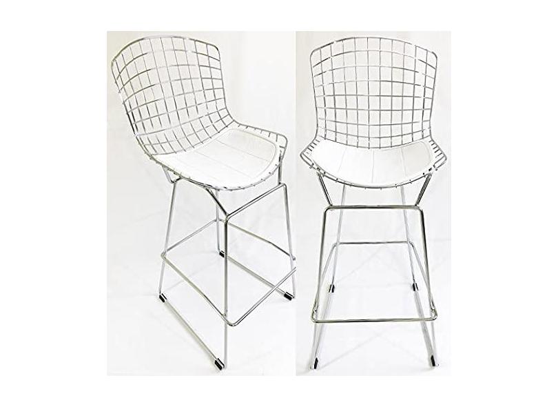 Kit 2 Banquetas BERTÓIA cromada assento branco altura 60cm - Poltronas do Sul