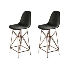 Kit 2 Banquetas Bistrô Alta Eames Preta Base Ferro Cobre