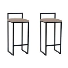 Kit 2 Banquetas Bistrô Alta Industriais Em Aço Dori Preto Assento Suede Bege Preto