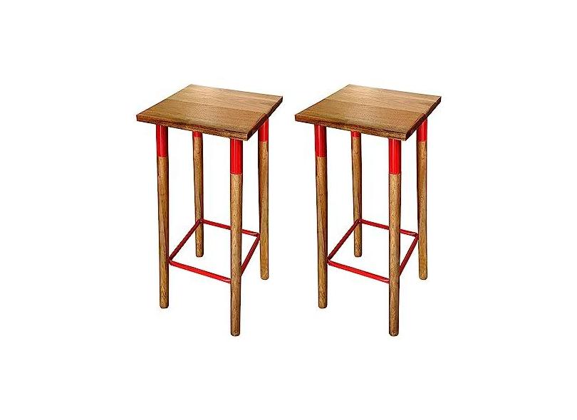 KIT 2 BANQUETAS BISTRO INDUSTRIAL COLORS FERRO E MADEIRA MACIÇA - VERMELHA