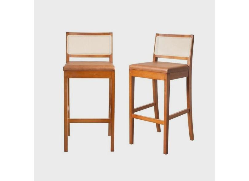 Kit 2 Banquetas com Encosto e Apoio para Pés Tiê Cabecasa Madeiramadeira