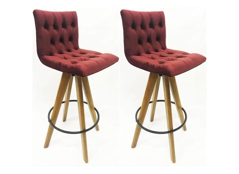 Kit 2 Banquetas Decorativa CAPITONÊ veludo marsala - Poltronas do Sul