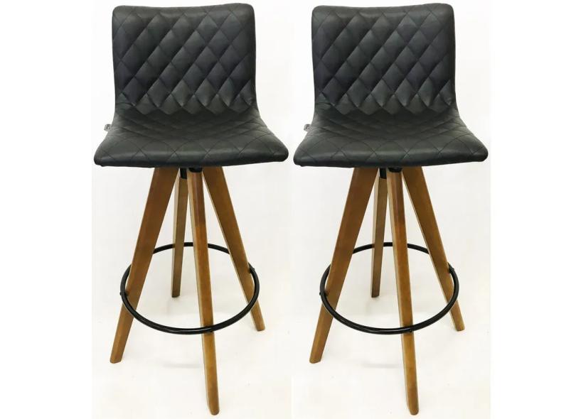 Kit 2 Banquetas Decorativa Karina Facto Base Giratória Madeira - Poltronas do Sul