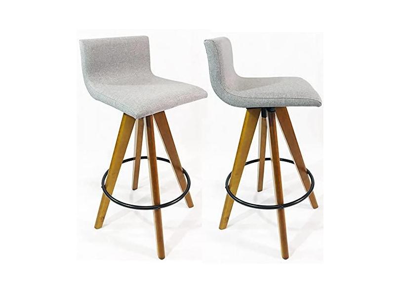 Kit 2 Banquetas Decorativa Pérola tecido linho Base Giratória Madeira - Poltronas do Sul
