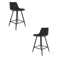 Kit 2 Banquetas Decorativas Magé PU Matelassê c/Apoio para os Pés Base em Aço Cinza G56 - Gran Belo