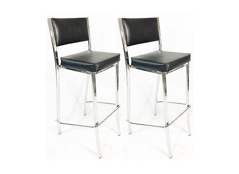 Kit 2 Banquetas EMPILHÁVEL cromada Altura 65cm assento e encosto preto - Poltronas do Sul