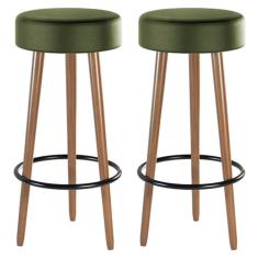 Kit 2 Banquetas Estofada Com Pés De Madeira Couríssimo Verde