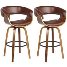 O menor preço encontrado no Brasil para Kit 2 Banquetas Giratória Alta Com Encosto Base Madeira Ravi R02 Pu Marrom - Mpozenato atualmente é R$ 3.359,98.