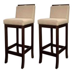 Kit 2 Banquetas Média em Madeira Capuccino Turim Linho Bege CCs
