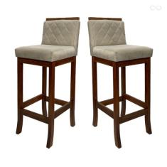 Kit 2 Banquetas Média em Madeira Castanho Nice Matelassê Suede Bege CCS