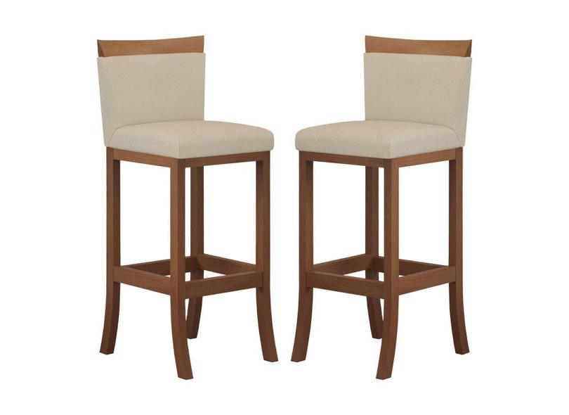 Kit 2 Banquetas Média Encosto Estofado 38x92 Cm Ilha Paris Madeira Maciça Castanho Suede Bege CCS