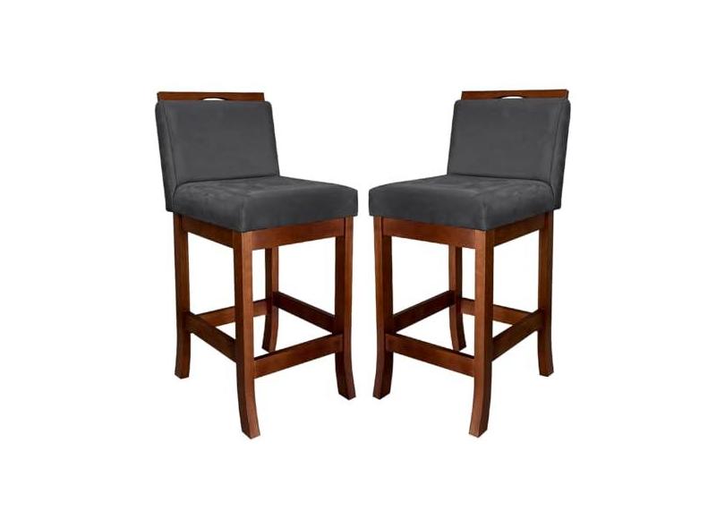 Kit 2 Banquetas Média Estofada para Balcão Turim Madeira Castanho Suede Cinza CCS