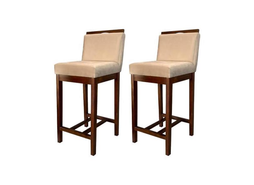 Kit 2 Banquetas Média Estofadas com Encosto Líbia Madeira Capuccino Suede Bege CCS