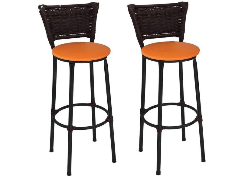 O menor preço encontrado no Brasil para Kit 2 Banquetas Médias Preta com Encosto Junco Argila Assento Laranja atualmente é R$ 247,97.