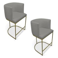 Kit 2 Banquetas Paola Linho Base Metálica Dourada - D`rossi Cor A26 Grafite