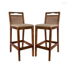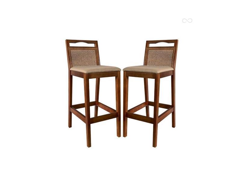 Kit 2 Banquetas para Bancada Alta de Madeira Estofada Valência Rattan