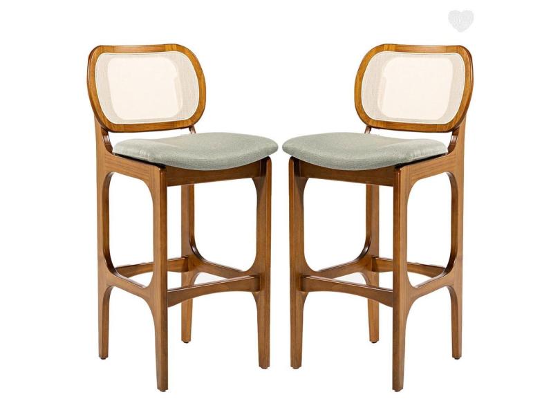 O menor preço encontrado no Brasil para Kit 2 Banquetas para Cozinha Americana Decor Encosto Rattan Madeira Imbuia Linho Verde L84 rmi atualmente é R$ 2.047,56.