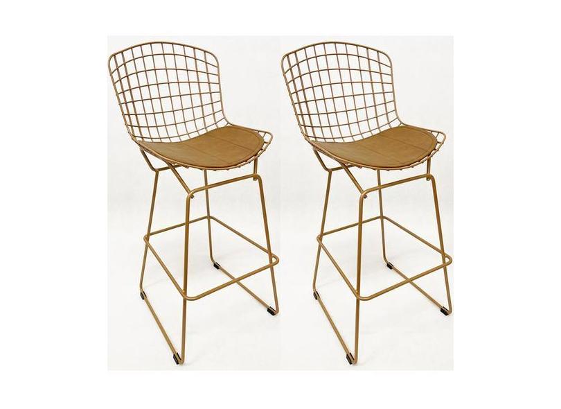 Kit 2 Banquetas para Cozinha média Bertoia maciça cor Dourado fosco as