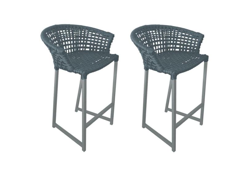 Kit 2 Banquetas Reis em Corda Náutica e Base em Alumínio Cinza para Área Gourmet - Externa Cinza