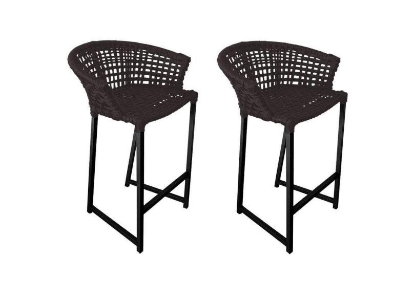 Kit 2 Banquetas Reis Em Corda Náutica E Base Em Alumínio Preta Para área Gourmet Externa Marrom
