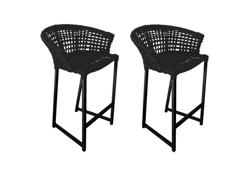 Kit 2 Banquetas Reis em Corda Náutica e Base em Alumínio Preta para Área Gourmet - Externa Preta