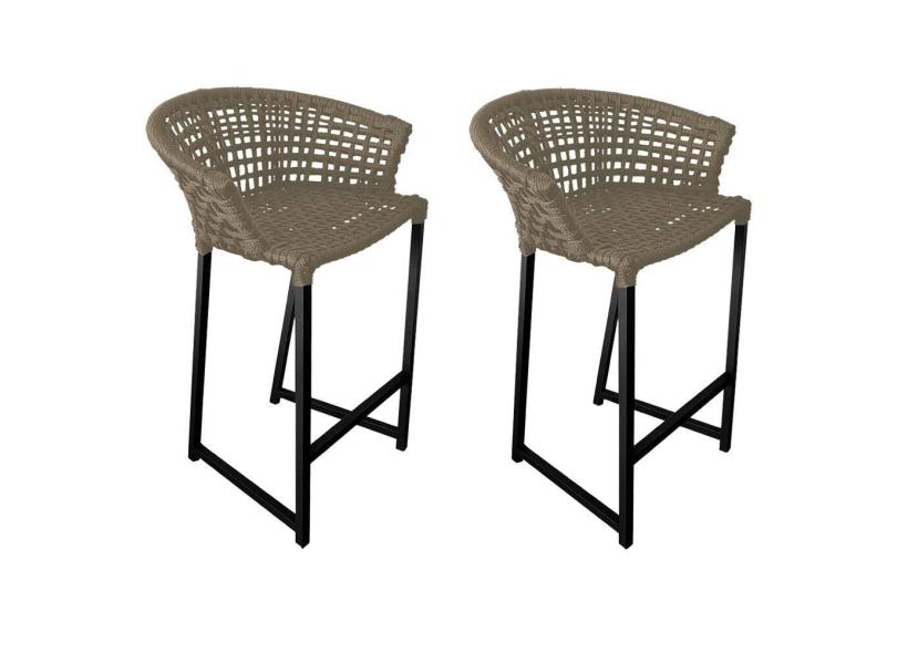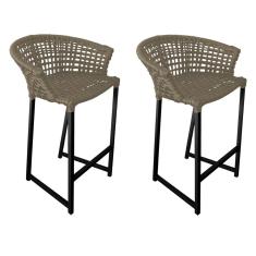 Kit 2 Banquetas Reis em Corda Náutica e Base em Alumínio Preta para Área Gourmet - Externa Rami