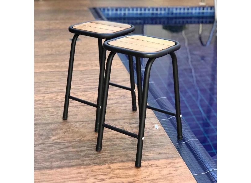 Kit 2 Banquinhos De Aço E Madeira Preto Altura 46 Cm