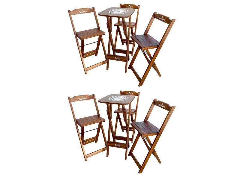 O menor preço encontrado no Brasil para Kit 2 Conjuntos Bistrô Mesa Com 3 Banquetas Dobráveis De Madeira Personalizada Hei - Imbuia Marrom atualmente é R$ 1.220,37.