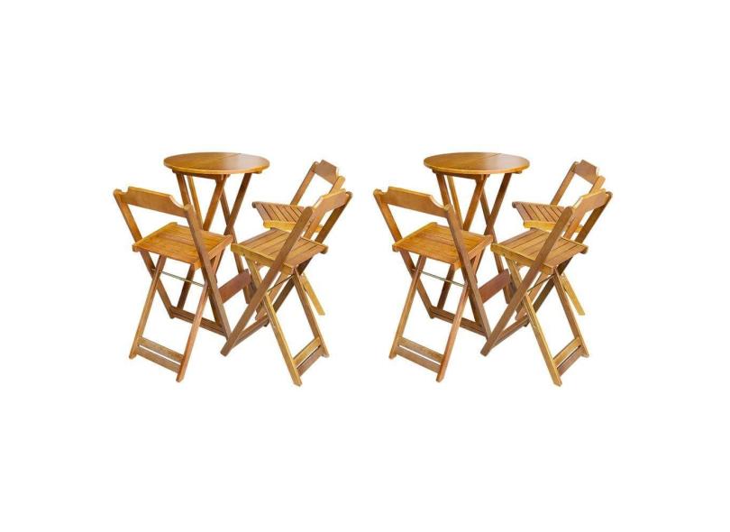 Kit 2 Conjuntos de Mesa Bistrô Dobravel em Madeira Maciça com 3 Banquetas Altas - Caramelo