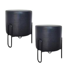 Kit 2 Puff Banqueta Redondo Ferro material sintético Sala Quart - MM D