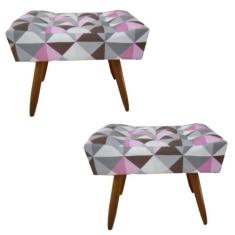 Kit 2 Puff Decorativo Banqueta Retangular Pés de Madeira Palito Triâng