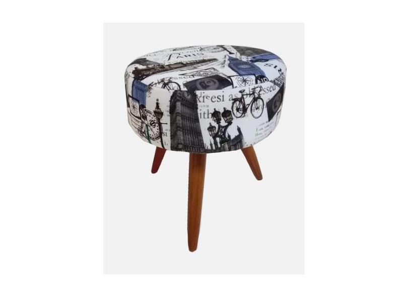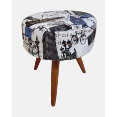 Kit 2 Puff Decorativo Redondo Banqueta com Pés de Madeira Palito Tecid