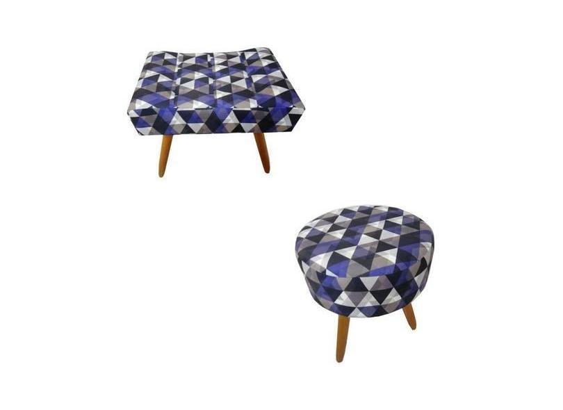 Kit 2 Puffs Decorativo Banqueta Redondo e Retangular Tecido Suede Tria
