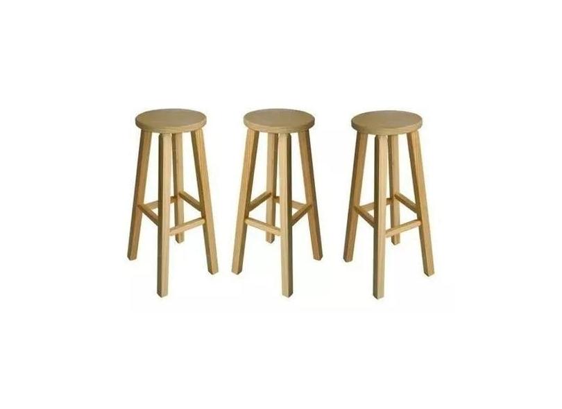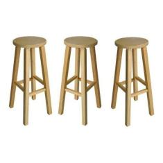 Kit 3 Banqueta Alta Hardman Madeira Natura Assento Redondo - Hardman M