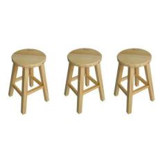 kit 3 Banqueta Media Hardman Madeira Natural Assento Redondo - Hardman