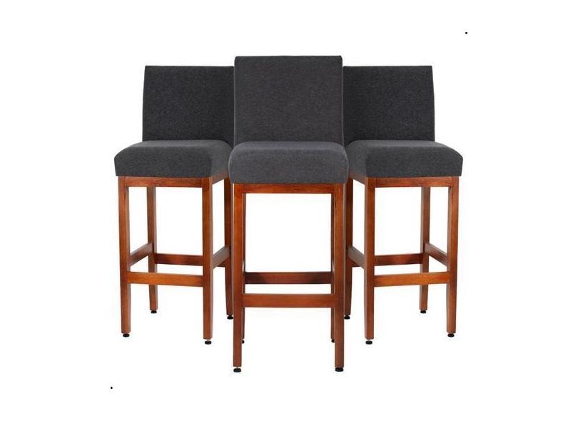 Kit 3 Banqueta Para Cozinha Alta De Madeira Maciça Eucalipto Estofada
