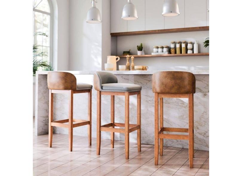 Kit 3 Banqueta Quadrada Estofado Confortavel Linho Luxuoso Conjunto Area Gourmet Moderna Retro