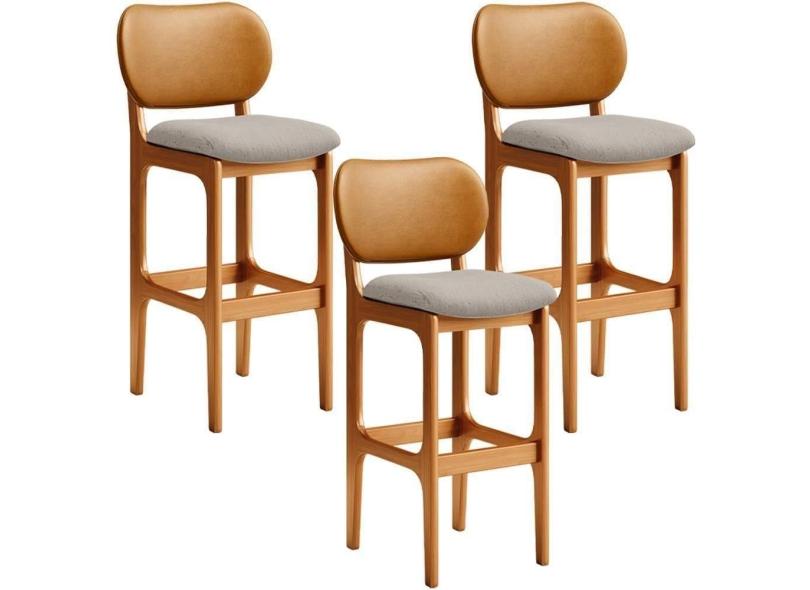 Kit 3 Banquetas Alta Betta Imbuia Whisky Linho Bege