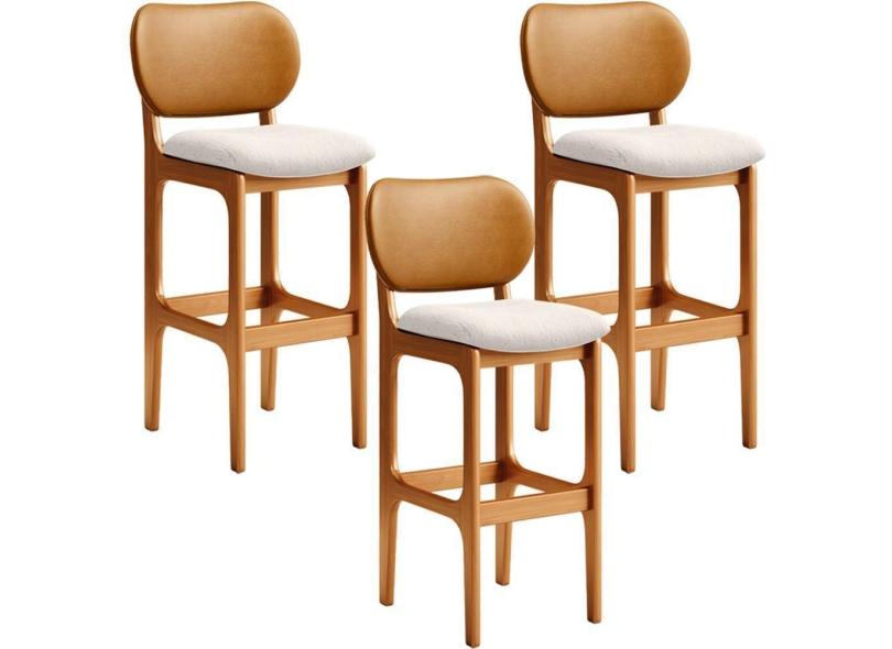 Kit 3 Banquetas Alta Betta Imbuia Whisky Linho Cru