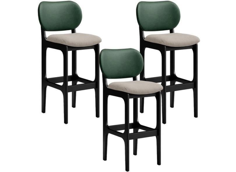 Kit 3 Banquetas Alta Betta Preto Facto Verde Linho Bege