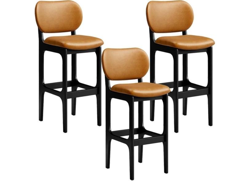 Kit 3 Banquetas Alta Betta Preto Whisky