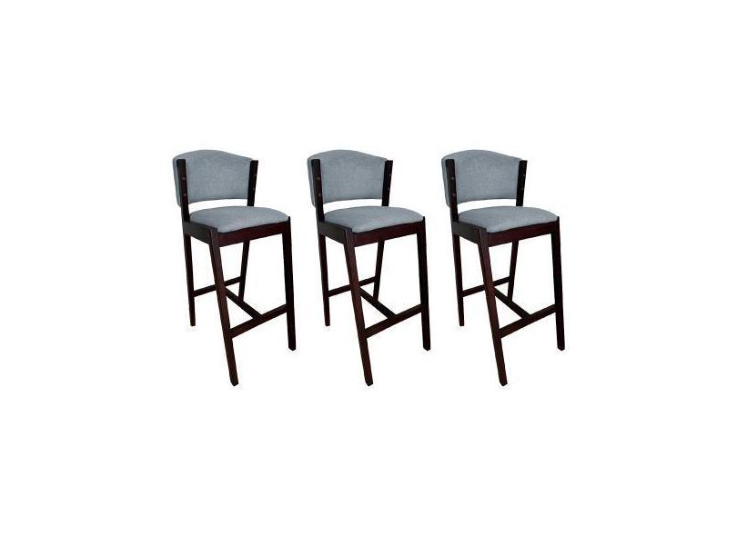 Kit 3 Banquetas Alta de Madeira Maciça Castanho Premium Ana com Encost