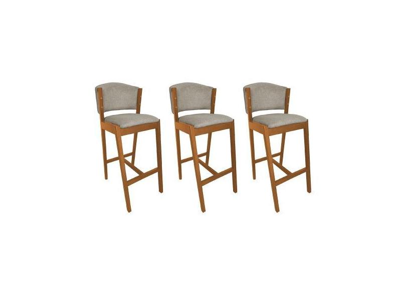 Kit 3 Banquetas Alta de Madeira Maciça Cerejeira Premium Ana com Encos