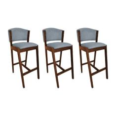 Kit 3 Banquetas Alta de Madeira Maciça Mel Premium Ana com Encosto Lin
