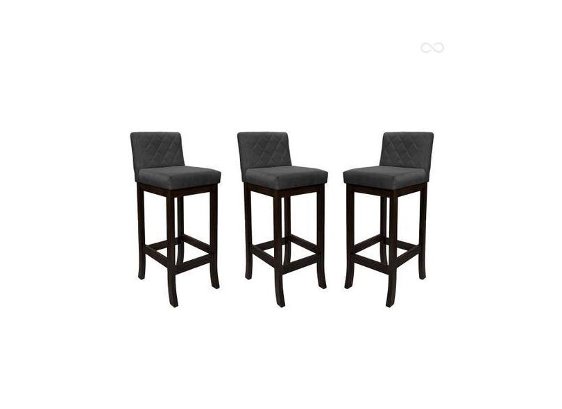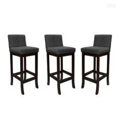 Kit 3 Banquetas Alta de Madeira Maciça Tóquio com Encosto Matelassê Su