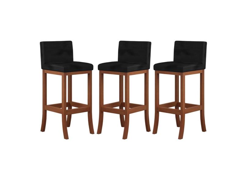 O menor preço encontrado no Brasil para Kit 3 Banquetas Alta Encosto Estofado 38x100 Cm Espanha Madeira Maciça Castanho Suede Preto ccs atualmente é R$ 1.206,58.