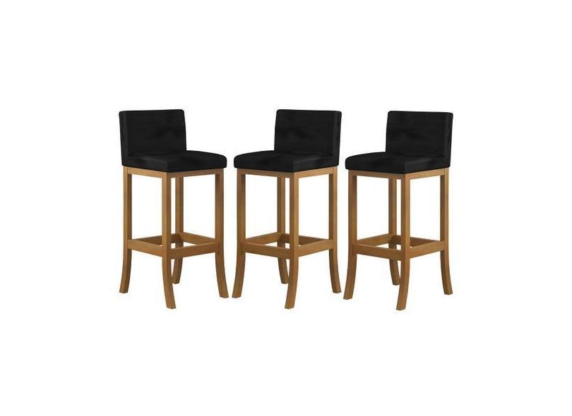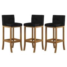 Kit 3 Banquetas Alta Encosto Estofado 38x100 Cm Ilha Espanha Madeira M